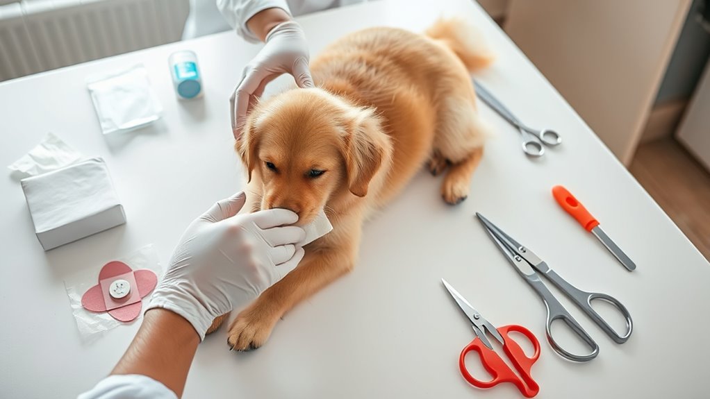 Stellen Sie sich die Verletzungen Ihres Hundes als zerbrechliche Blumen vor, die sanften Schutz benötigen. Bei der Auswahl von Verbandsmaterial greifen Sie zu weichen, atmungsaktiven Materialien, die die Zartheit einer Blüte nachahmen. Hundepflege Tipps helfen Ihnen, die besten Verbände zu wählen – wie nicht haftende Pads und elastische Bandagen –, die Schmerzen und Infektionen verhindern. Ihr Ziel ist es, eine sichere, unterstützende Hülle zu schaffen, damit Ihr pelziger Freund mit Komfort und Fürsorge heilen kann, wie eine Blume, die vor rauen Winden geschützt ist.