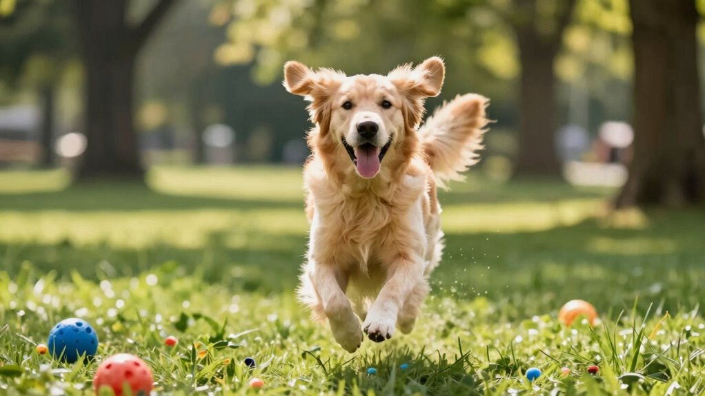 Um Ihren Hund während des freien Spiels aufmerksam zu halten, ohne ihn zu überanstrengen, sollten Sie seine Energieniveaus genau beobachten und klare Grenzen setzen. Verwenden Sie konsequente Signale und Routinen, um gutes Verhalten zu verstärken und Ermüdung zu vermeiden. Schaffen Sie eine sichere Umgebung mit schattigen Bereichen, Wasser und weichen Oberflächen, um Verletzungsrisiken zu minimieren. Integrieren Sie regelmäßige Pausen und achten Sie auf Anzeichen von Erschöpfung wie schweres Hecheln oder Nachlassen. Ihre Aufmerksamkeit hilft Ihrem Hund, engagiert und glücklich zu bleiben, und es gibt weitere Tipps, um sicheres Spielen zu meistern.