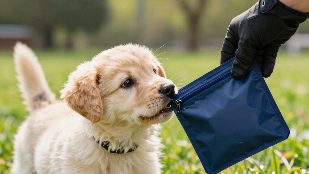 Die Verwendung eines Leckerlibeutels beim Training Ihres Anfängerhundes hält Belohnungen leicht zugänglich, was Ihnen hilft, gutes Verhalten sofort zu verstärken. Es ermöglicht schnelles, konsistentes Lob, das das Vertrauen Ihres Hundes aufbaut und seine begeisterte Reaktion fördert. Gut vorbereitet zu bleiben minimiert Ablenkungen und hält Ihre Trainingseinheiten positiv. Das Erkennen der Signale Ihres Hundes stellt sicher, dass Sie zur richtigen Zeit belohnen, was sein Selbstvertrauen stärkt. Erkunden Sie weitere Tipps, und Sie finden die besten Wege, um eine starke, vertrauensvolle Bindung zu Ihrem Hund aufzubauen.
