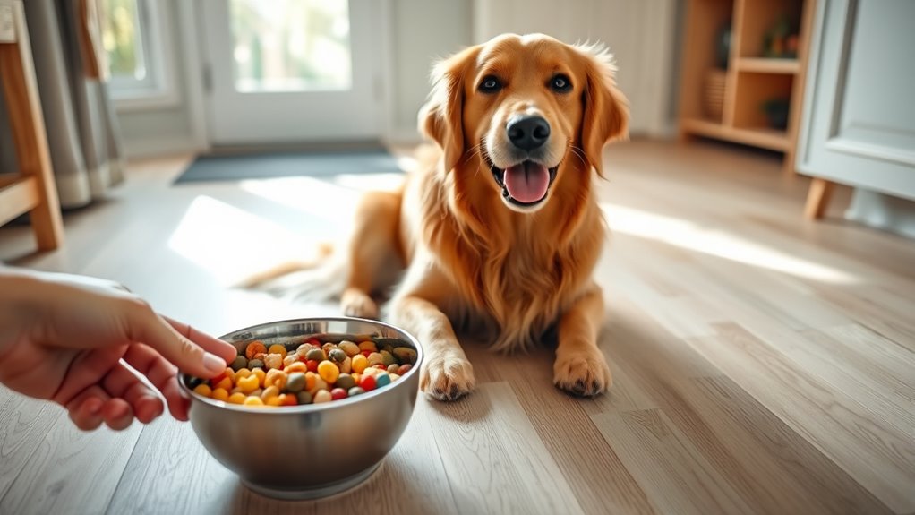 Die Aufrechterhaltung konstanter Fütterungszeiten hilft, die Verdauung Ihres Hundes zu regulieren und eine stabile Routine zu unterstützen. Wenn Sie sich an einen regelmäßigen Zeitplan halten, lernt der Körper Ihres Hundes, wann er mit Nahrung rechnen kann, was die Verdauung verbessern und gastrointestinale Probleme reduzieren kann. Fütterungskonstanz hilft Ihnen auch, den Appetit und die Gesundheit Ihres Hundes effektiver zu überwachen. Die Bedeutung des Zeitplans kann nicht hoch genug eingeschätzt werden, da er Stress minimiert und Betteln oder Überfütterung verhindert. Um einen reibungslosen Übergang zu erleichtern, füttern Sie Ihren Hund jeden Tag zu den gleichen Zeiten und passen Sie die Portionen bei Bedarf schrittweise an. Diese Konsistenz erleichtert es Ihrem Hund, sich an das neue Futter zu gewöhnen, und fördert ein Gefühl der Sicherheit. Darüber hinaus kann das Verständnis der Pferdestärke und Energiebedürfnisse Ihres Hundes Ihnen helfen, geeignete Portionsgrößen und Fütterungspläne auszuwählen. Das Beachten der Fütterungsrichtlinien stellt sicher, dass Sie die richtige Menge an Nährstoffen bereitstellen, um die Gesundheit Ihres Hundes zu unterstützen. Die Integration von guten Designprinzipien in Ihre Routine, wie vorhersehbare und beruhigende Umgebungen während der Fütterungszeiten, kann das Wohlbefinden Ihres Hundes zusätzlich verbessern. Konstante Routinen helfen auch, Verhaltensprobleme im Zusammenhang mit unregelmäßigen Fütterungsplänen zu verhindern, was die Verwaltung erleichtert. Letztlich fördert eine vorhersehbare Routine das allgemeine Wohlbefinden Ihres Hundes und macht den Fütterungsprozess einfacher zu handhaben.