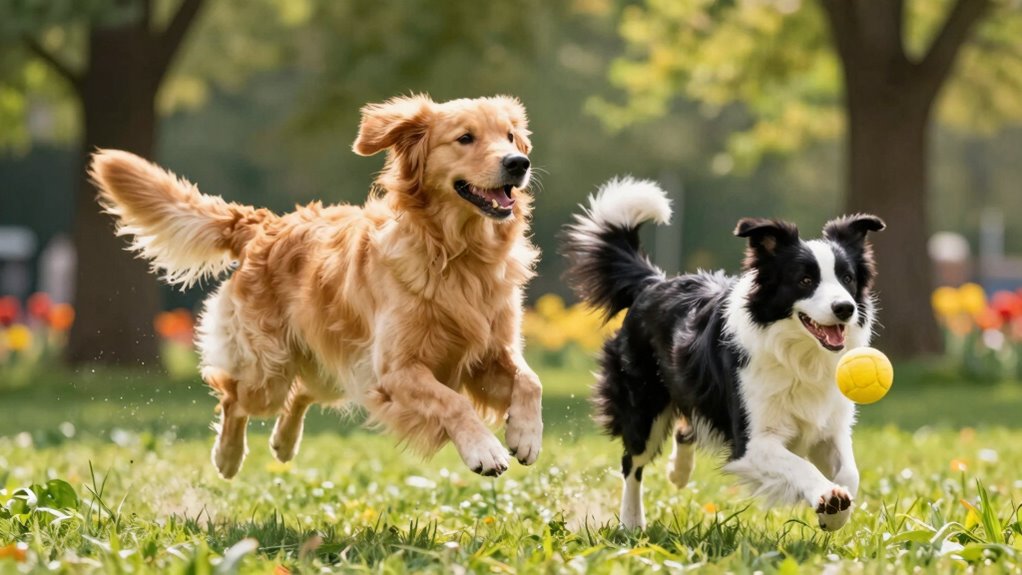 Stell dir vor, du hältst einen Moment fest, als wärst du in einem alten Film – so solltest du beim Fotografieren deines Hundes während des Spiels vorgehen. Um authentische Momente einzufangen, sei aufmerksam auf das Verhalten und die verspielten Ausdrücke deines Hundes und antizipiere seine nächsten Bewegungen. Verwende eine schnelle Verschlusszeit, um die Aktion zu stoppen, und sei bereit mit deiner Kamera. Gehe auf Augenhöhe mit deinem Hund, um wirklich echte, fröhliche Momente einzufangen, die eine Geschichte erzählen.