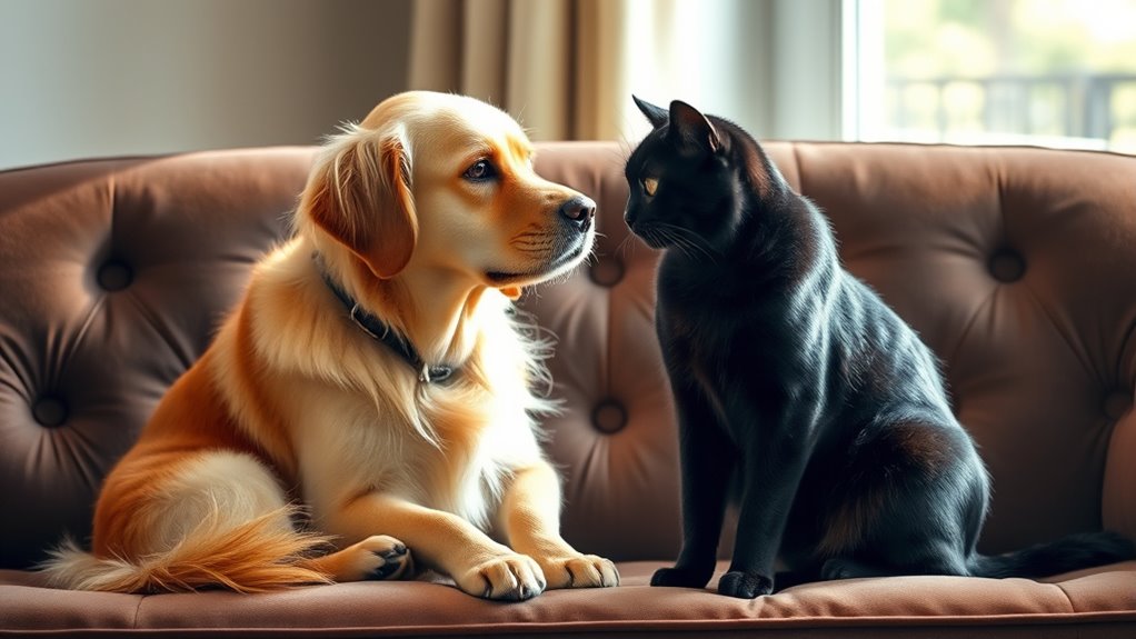 Hunde können tatsächlich Eifersucht empfinden, besonders wenn sie sehen, dass ihr Besitzer einer anderen Katze oder Person Aufmerksamkeit schenkt. Sie drücken dieses Gefühl durch Verhaltensweisen wie Knurren, Wegschieben oder das Bewachen ihrer Lieblingsplätze und Spielsachen aus. Wissenschaftliche Studien zeigen, dass Hunde komplexe Emotionen erleben, wenn auch weniger vielschichtig als Menschen, und ihre Reaktionen oft instinktive Antworten auf wahrgenommene Bedrohungen ihrer Bindungen sind. Das Verständnis dieser Signale kann Ihnen helfen, Vertrauen aufzubauen und Harmonie zu fördern. Wenn Sie mehr über die Gefühle von Hunden erfahren möchten, bleiben Sie dran!