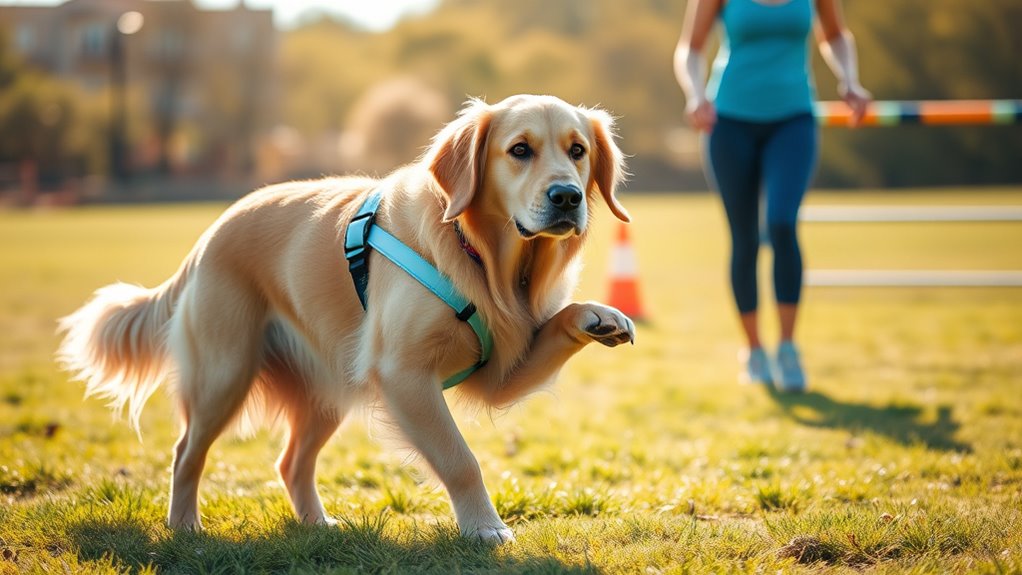 Denken Sie an die Muskeln Ihres Hundes wie an einen empfindlichen Garten, der sanft gegossen werden muss. Führen Sie diese Übungen 3-4 Mal pro Woche durch, um eine stetige Pflege zu gewährleisten, ohne es zu übertreiben. Achten Sie auf die Häufigkeit der Übungen und Sicherheitsaspekte, und steigern Sie die Intensität allmählich, um Überanstrengung zu vermeiden. Überwachen Sie Ihren Hund stets auf Anzeichen von Erschöpfung oder Unwohlsein und passen Sie die Routine bei Bedarf an. Dieser Ansatz hält Ihren Senior-Hund gesund und glücklich, wie ein gut gepflegter Garten.