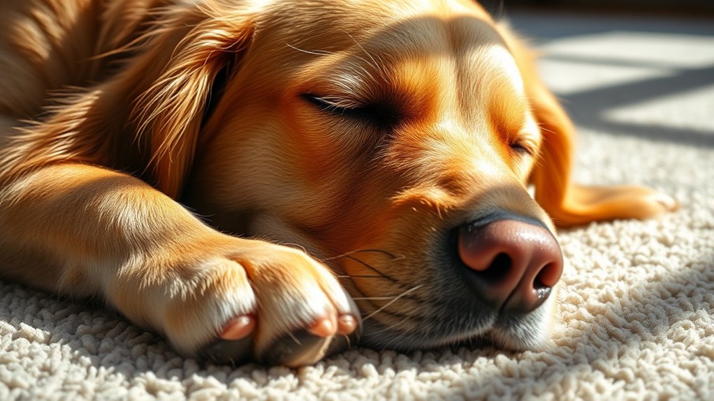Der Schlaf deines Hundes ist wie ein Film, der hinter geschlossenen Augen abläuft, und du kannst Albträume durch subtile Anzeichen erkennen. Wenn dein Hund jault, zuckt oder die Pfoten in die Luft streckt, sind das klare Hinweise auf einen Albtraum. Indem du seine Schlafmuster genau beobachtest, vor allem während des REM-Schlafs, kannst du diese Stresssignale erkennen. Wenn du häufiges Unwohlsein bemerkst, tröste deinen Hund sanft, um seine beunruhigten Träume zu lindern.